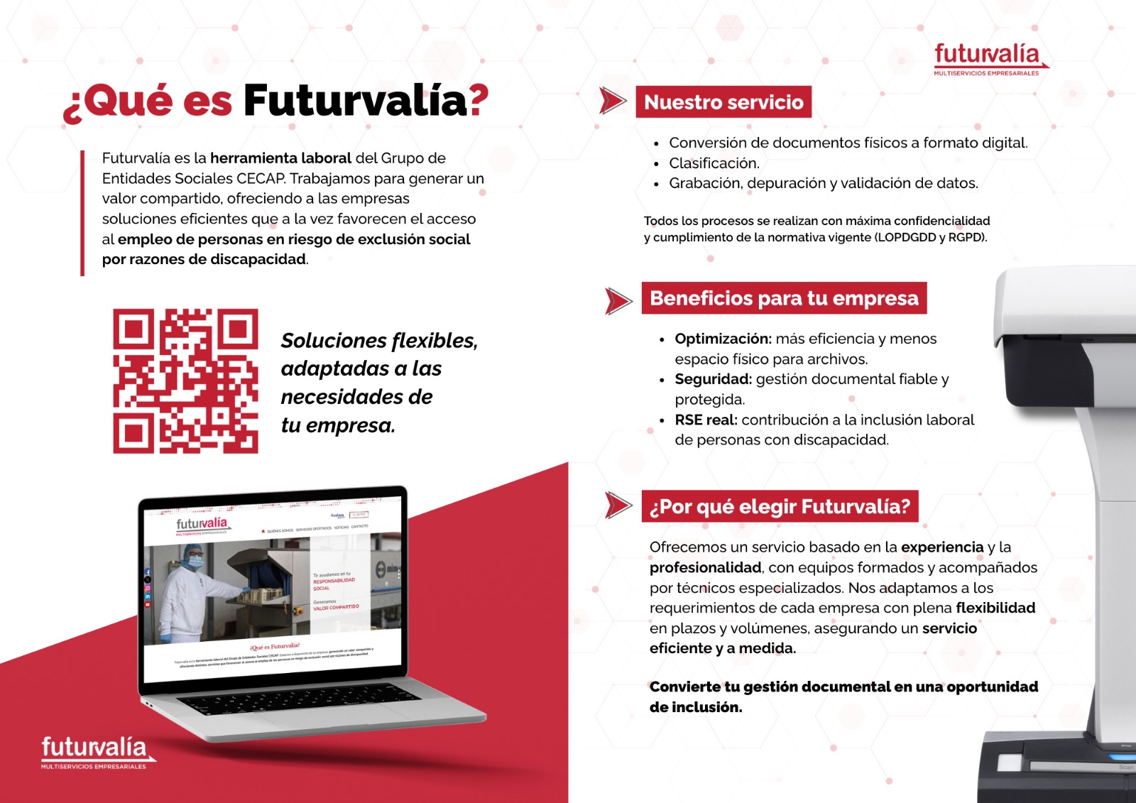 Digitalizamos datos, generamos inclusión. Bajo este lema, Futurvalía, la herramienta laboral del Grupo de Entidades Sociales CECAP, pone en marcha un innovador Servicio de Digitalización Documental y Grabación de Datos